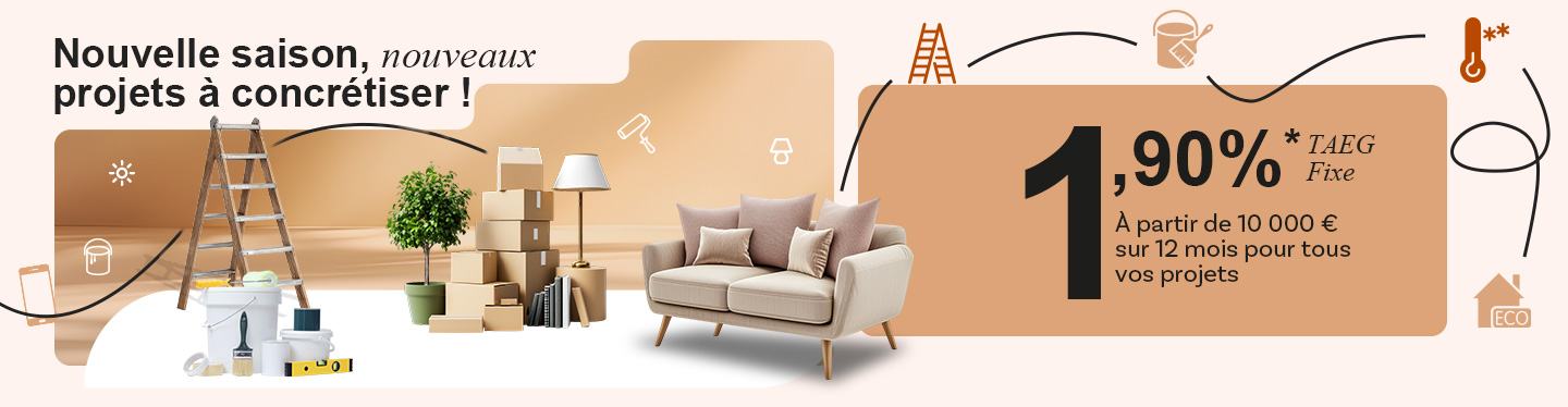 *Offre valable jusqu’au 08/11/2025, à partir de 10000€ sur 12 mois pour tous vos projets. Sous réserve d’acceptation du prêt personnel par FRANFINANCE (SA au capital de 202 911 984€ – Tour Granite – 17 cours Valmy – CS 50318 – 92800 Puteaux – 719 807 406 RCS Nanterre), Intermédiaire en assurance, N° ORIAS 07 008 346 (www.orias.fr). Assurances souscrites auprès de SOGECAP et SOGESSUR, entreprises régies par le Code des Assurances. FRANFINANCE, SOGECAP et SOGESSUR sont des filiales du Groupe SOCIÉTÉ GÉNÉRALE. Vous disposez d’un délai de rétractation de 14 jours à compter de la date de signature du contrat de crédit.